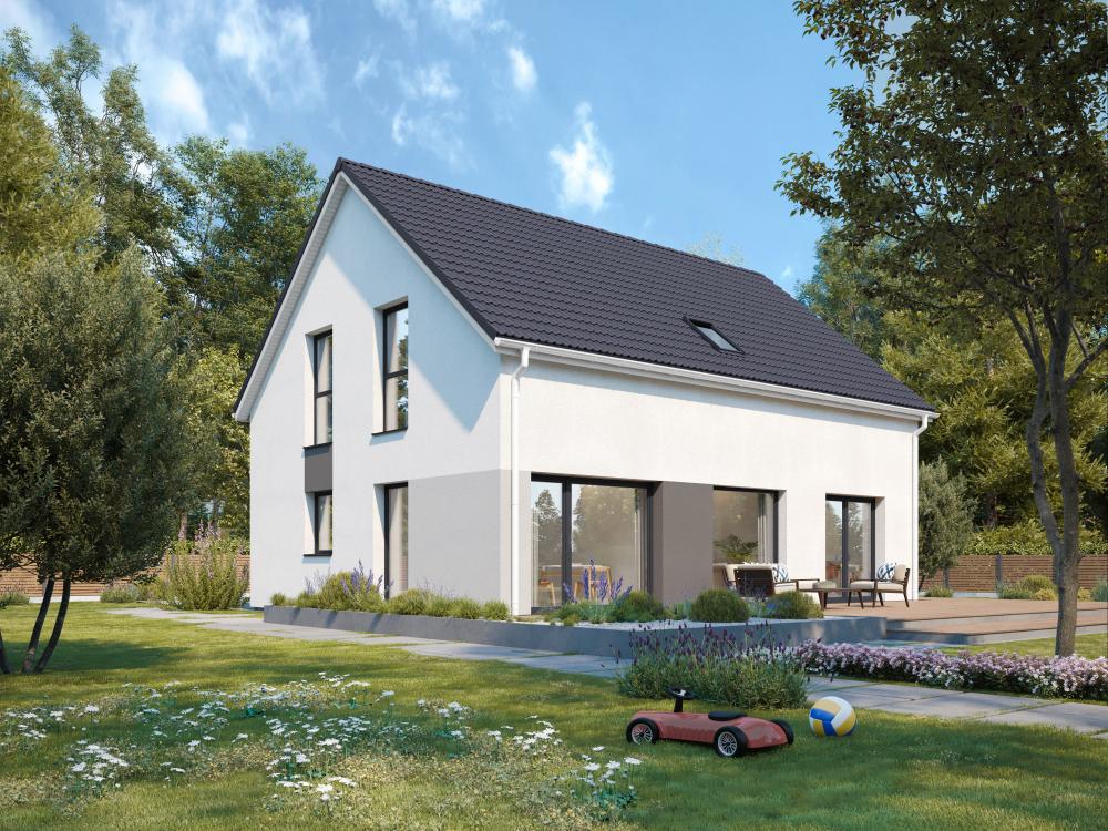 funkcjonalne zagospodarowanie terenu, czyli wydzielenie strefy frontowej, rekreacyjnej (ogród) oraz komunikacyjnej (podjazdy).