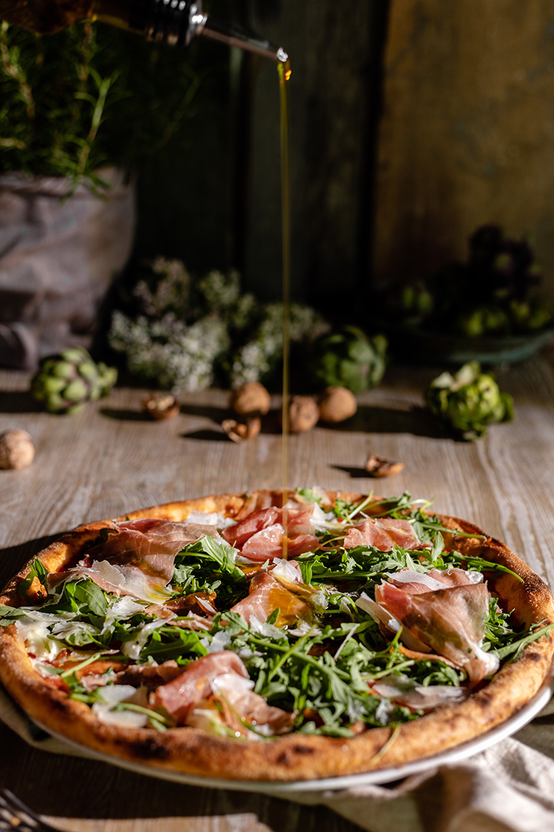 W otwartej kuchni króluje piec opalany drewnem. Pizzaiolo kręci pizzę, podrzuca – to prawdziwe widowisko. W lokalu panuje włoski klimat, w tle cicha muzyka, zapach ziół i specyficzny rodzaj spokoju, który powoduje, że na chwilę wyłączamy się z codziennego biegu.