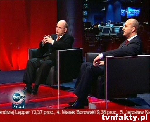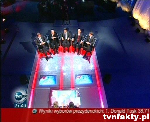 Tuż po pierwszych reakcjach kandydatów, przeprowadzono debatę Donalda Tuska z Lechem Kaczyńskim. Na antenie TVN pierwszą część programu zakończono o 20:45, a jego kontynuacja nastąpiła w TVN24. Andrzej Morozowski ponownie poprosił o komentarz prezydenta Aleksandra Kwaśniewskiego. Justyna Pochanke i Bogdan Rymanowski przeprowadzili także szereg rozmów z przedstawicielami poszczególnych ugrupowań. Ich gośćmi byli m.in.: Andrzej Lepper, Marek Borowski, Jan Rokita, Kazimierz Marcinkiewicz, Roman Giertych i Wojciech Olejniczak. Razem z socjologiem, prof. Ireneuszem Krzemińskim rezultat wyborów omawiał Andrzej Stankiewicz z "Rzeczpospolitej".